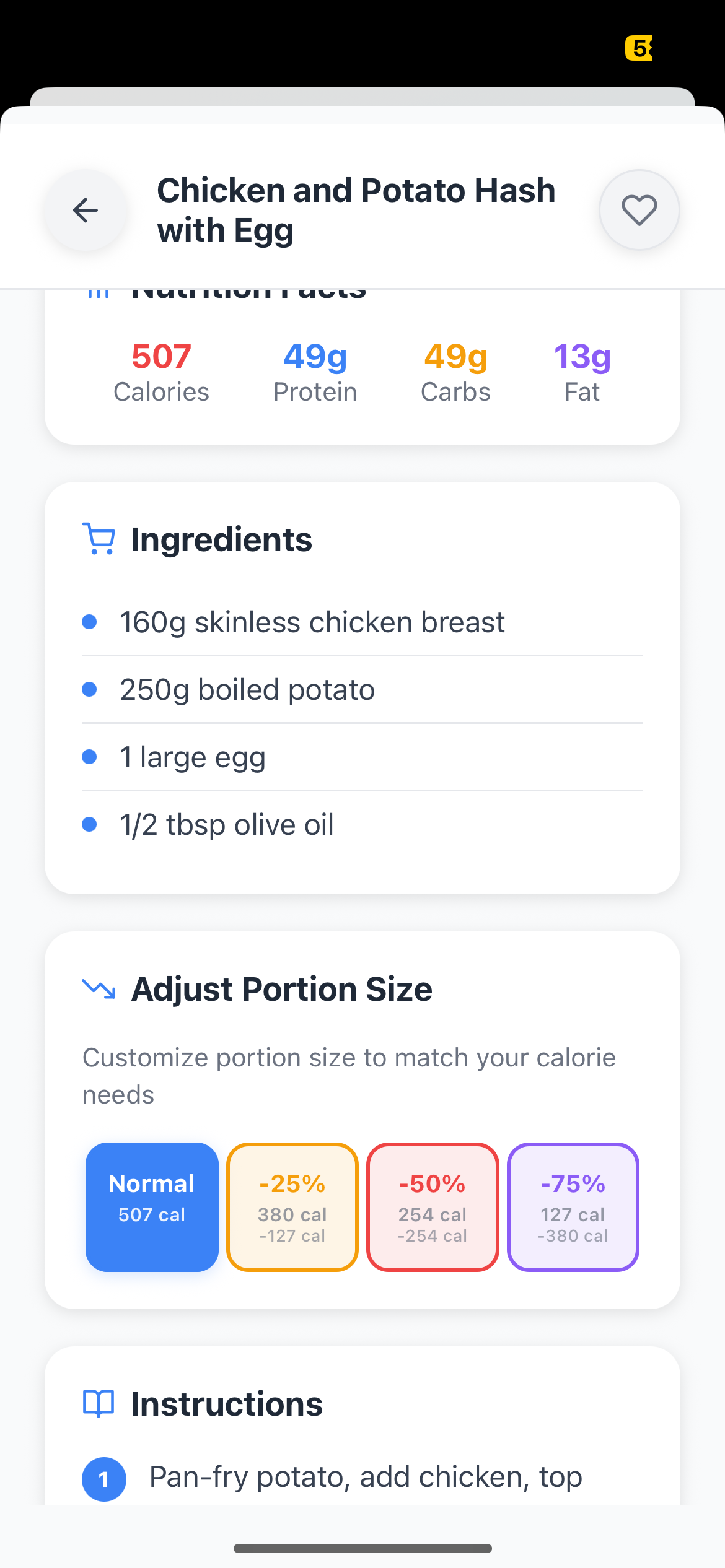 Access thousands of recipes with full nutritional facts, customizable portion sizes, and detailed ingredients. Add meals for breakfast, lunch, dinner, plus snacks, pre-workout, and post-workout nutrition - all with step-by-step cooking instructions.